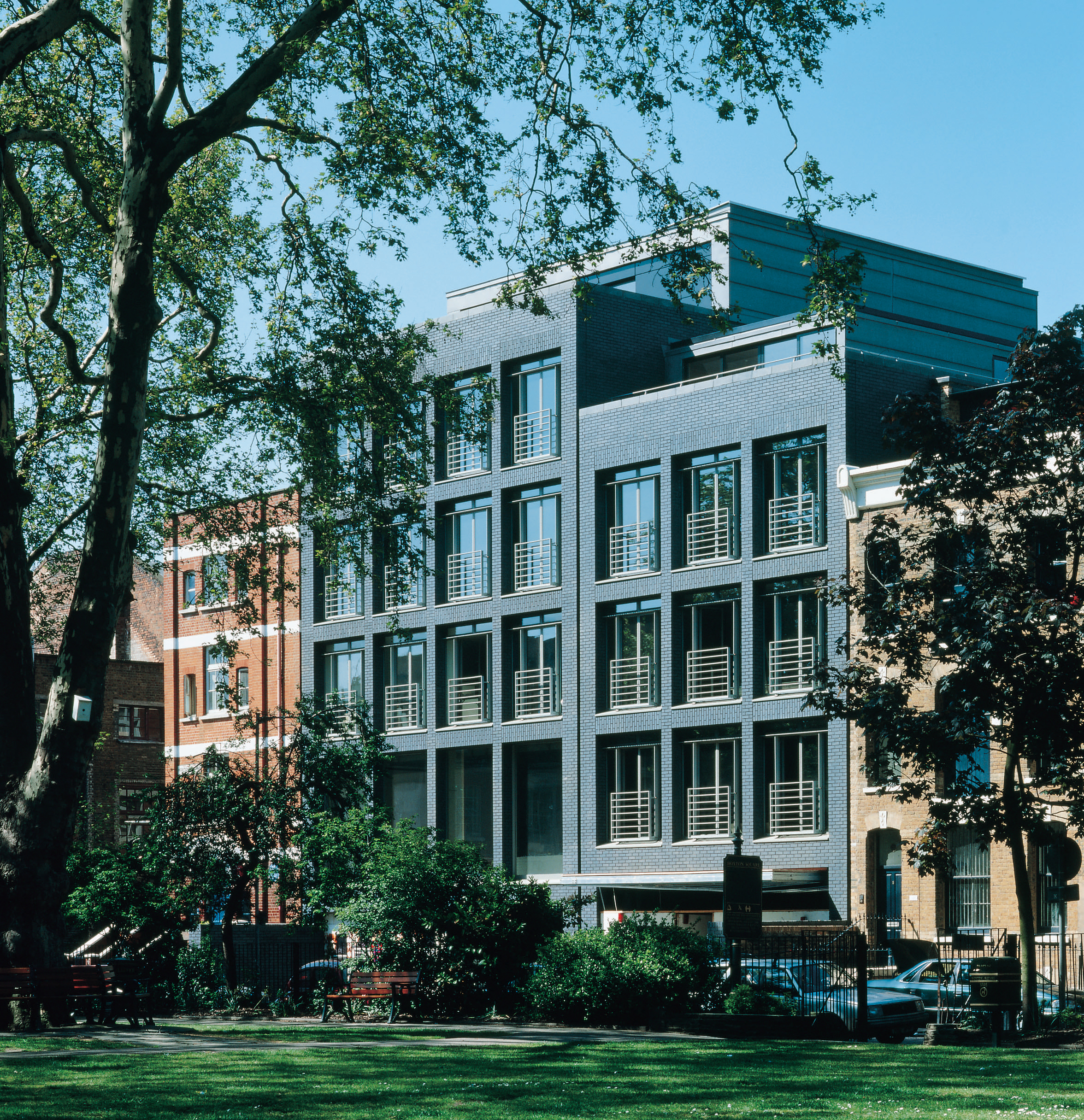 This project began as a shell and core development, but as the project progressed more contributions were added. The main elevation facing Hoxton Square shows seven bays, split in a 4/3 arrangement. This reflects where the core is located (centrally) within, and is reinforced by a difference in the number of storeys.