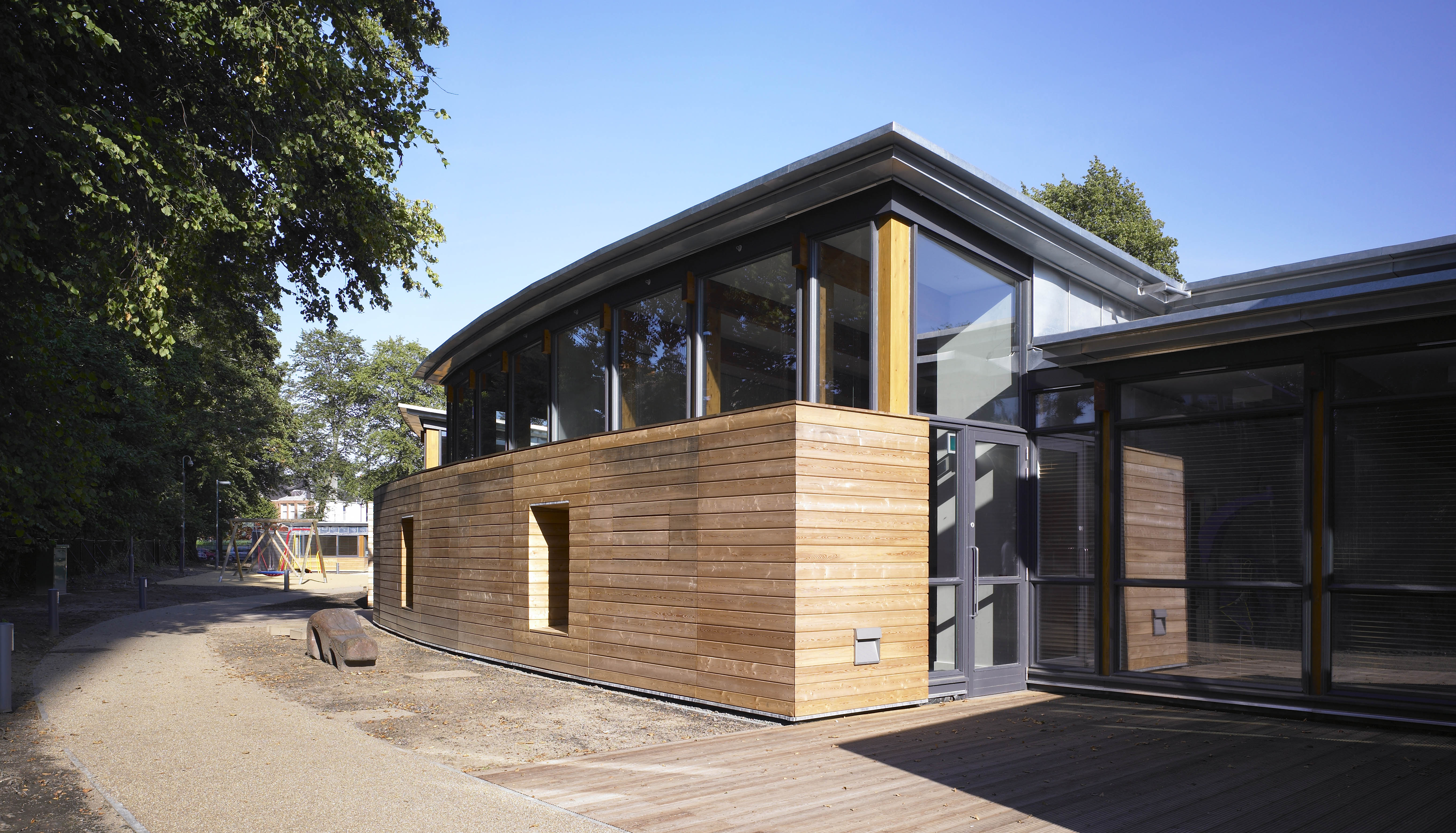 Curving classroom exterior