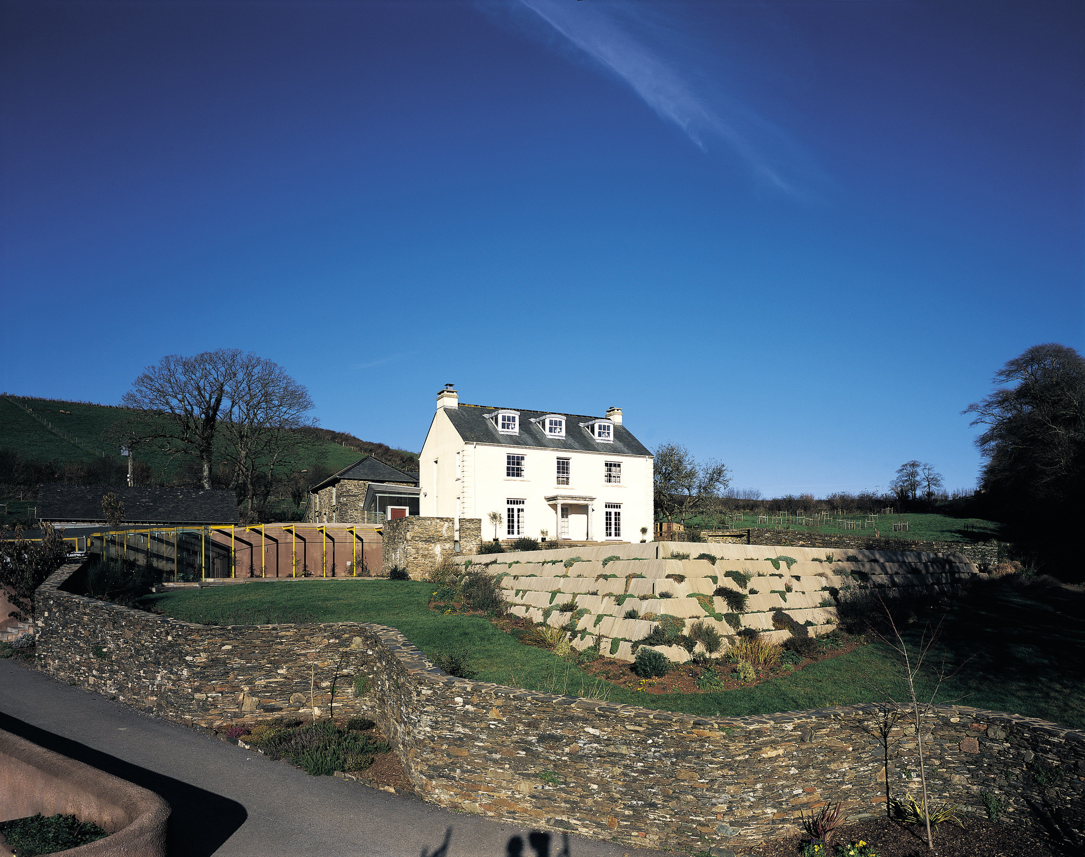 In the third phase a new garden was created and the old access to the front of the house removed. In the fourth phase a new glasshouse was created to complete the garden works. In the fifth phase the old barns were converted into holiday apartments and an events hall.