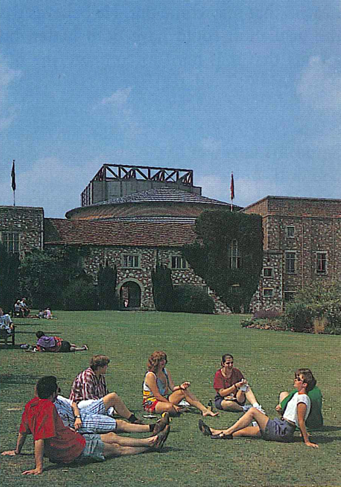 The large inter-dependent and windowless volume of the 1,200 seat auditorium, the fly tower, stage, side stages and back stage with their fixed relationships, are placed in the centre of the building. The foyers and back-up spaces - dressing rooms, the green room, studios, offices and workshops are wrapped around the building on three levels, giving views out to the gardens and scale and proportion to the facade.