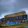The building is a combination of new-build and refurbishment, which creates a successful new space for students to learn. The existing building was inward-looking, uninspiring and without a clear organising element or focus. Alsop’s 16,000m2 refurbishment was built with standardised building components. It is a steel box clad with black and white aluminium top. The deep punched-out windows have large recesses for students to sit in and lean on.