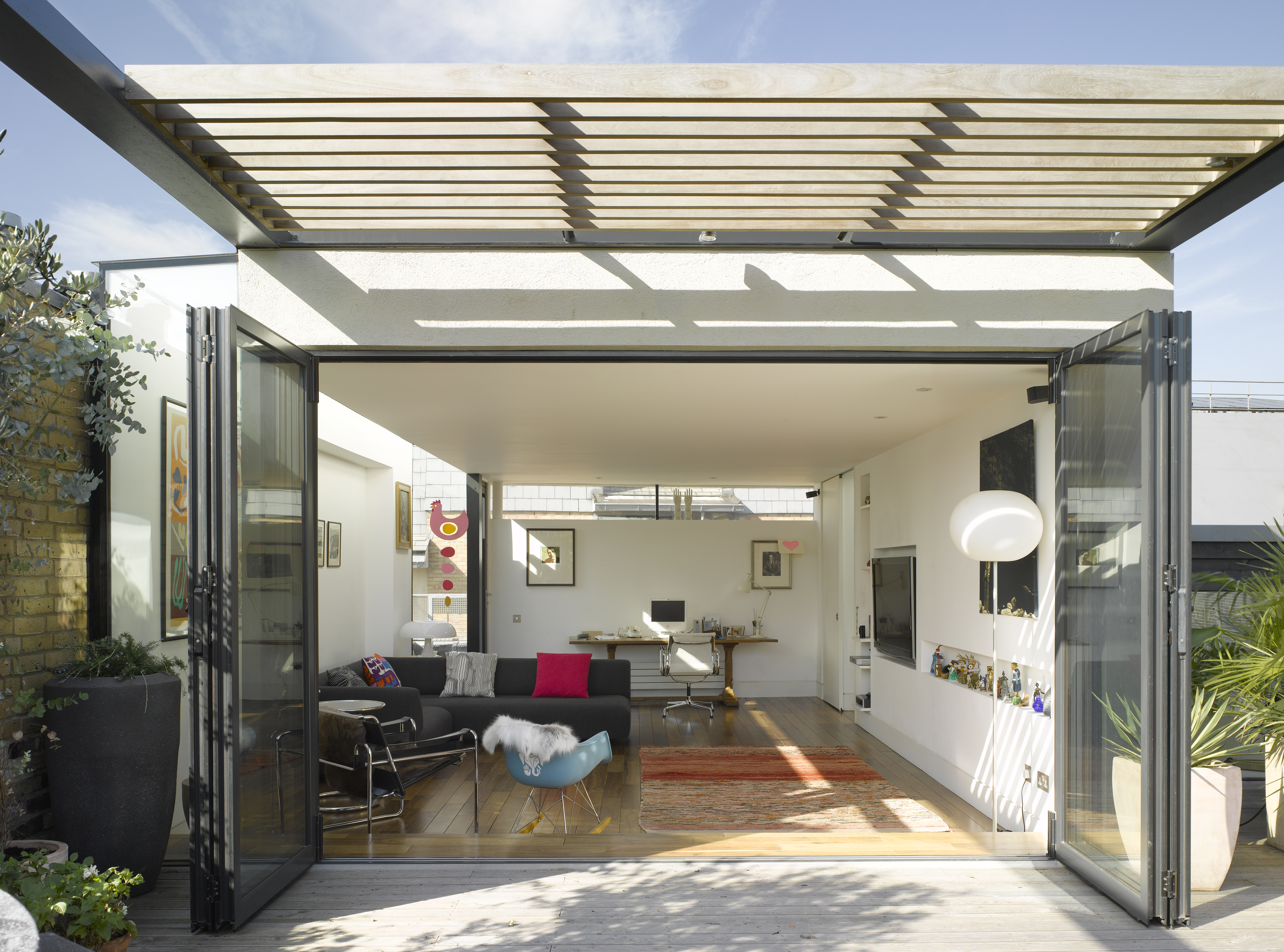 Roof level extension to create additional space for a family on the top floor of a Victorian warehouse in Shoreditch