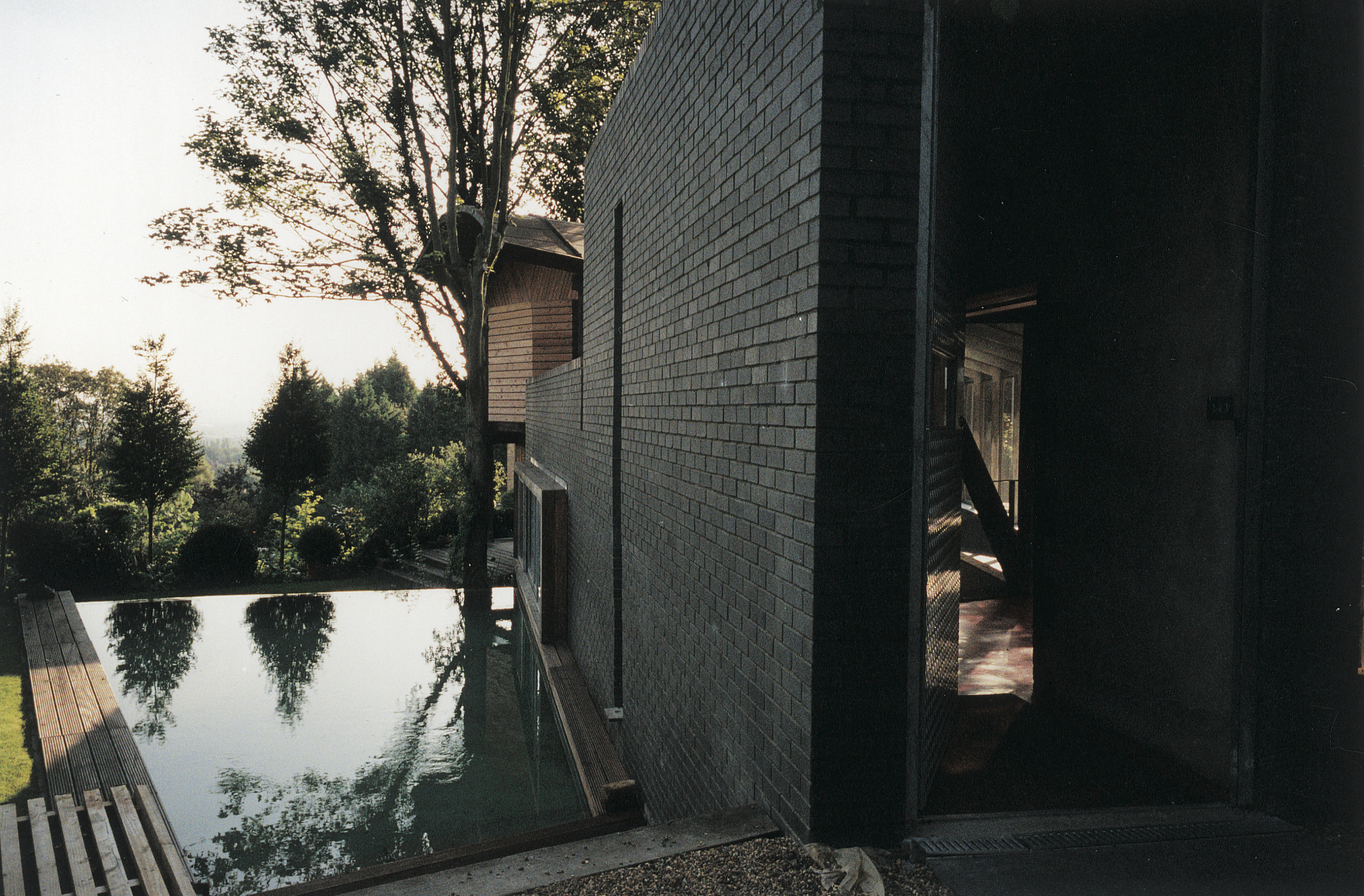 To the north west, there is a mature garden with a pool, which can be accessed directly from the kitchen and dining room. Externally, the north-west elevation of the kitchen block is clad in precise blue engineering brick. Combined with the galvanised metal windows, the effect is like that of the most uncompromising work of the 1960s.