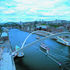 Opening bridge for pedestrian and cyclists spanning 105 meters over the River Tyne. Winner of the 2002 Stirling Prize