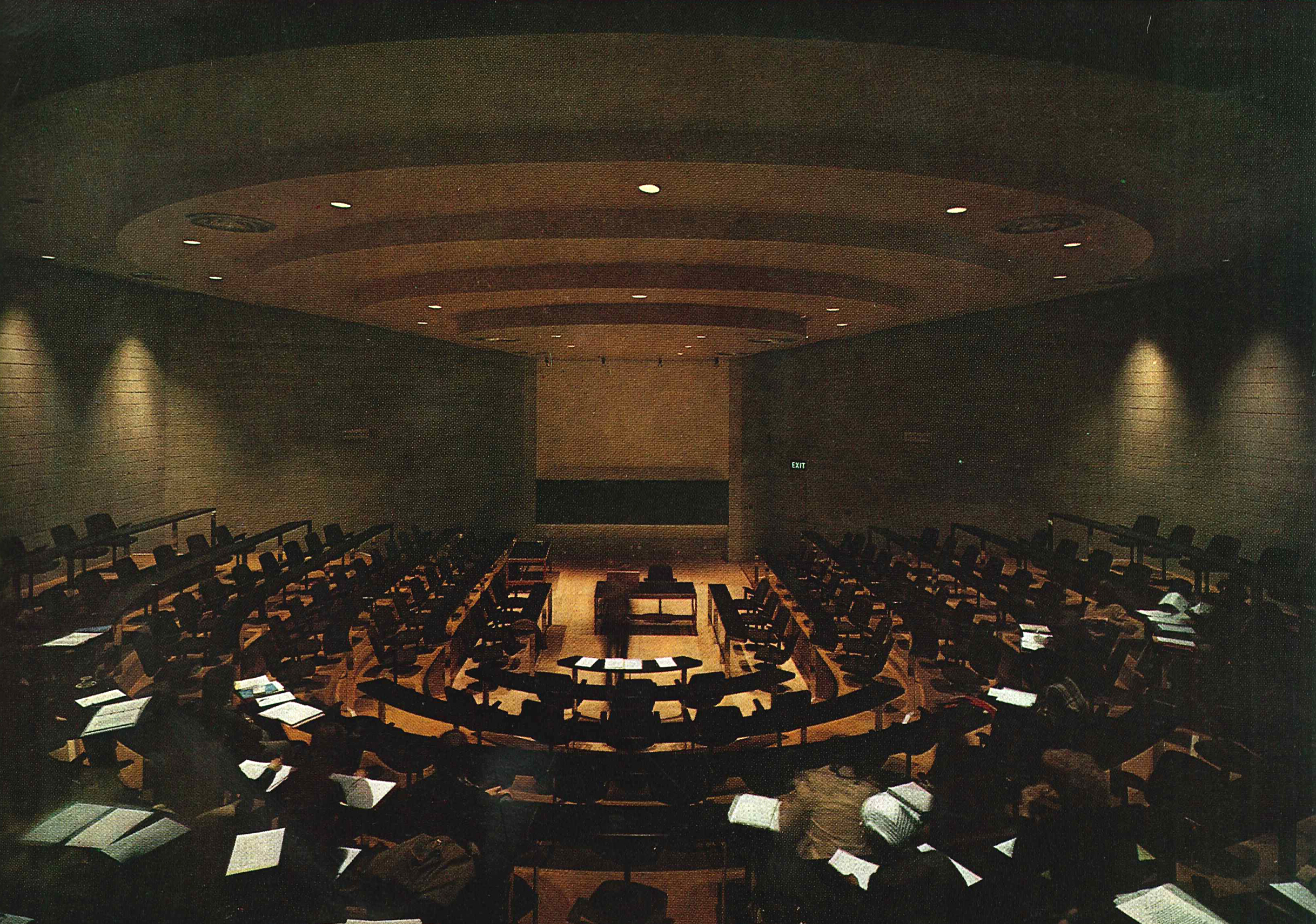 The music department is a self-contained building opposited the concourse, holding a lobby/common room and nine practice rooms. The conference hall sits off the concourse and has 200 places. Its design, although on a larger scale, is based on the Aldrick Hall of Harvard Business School.