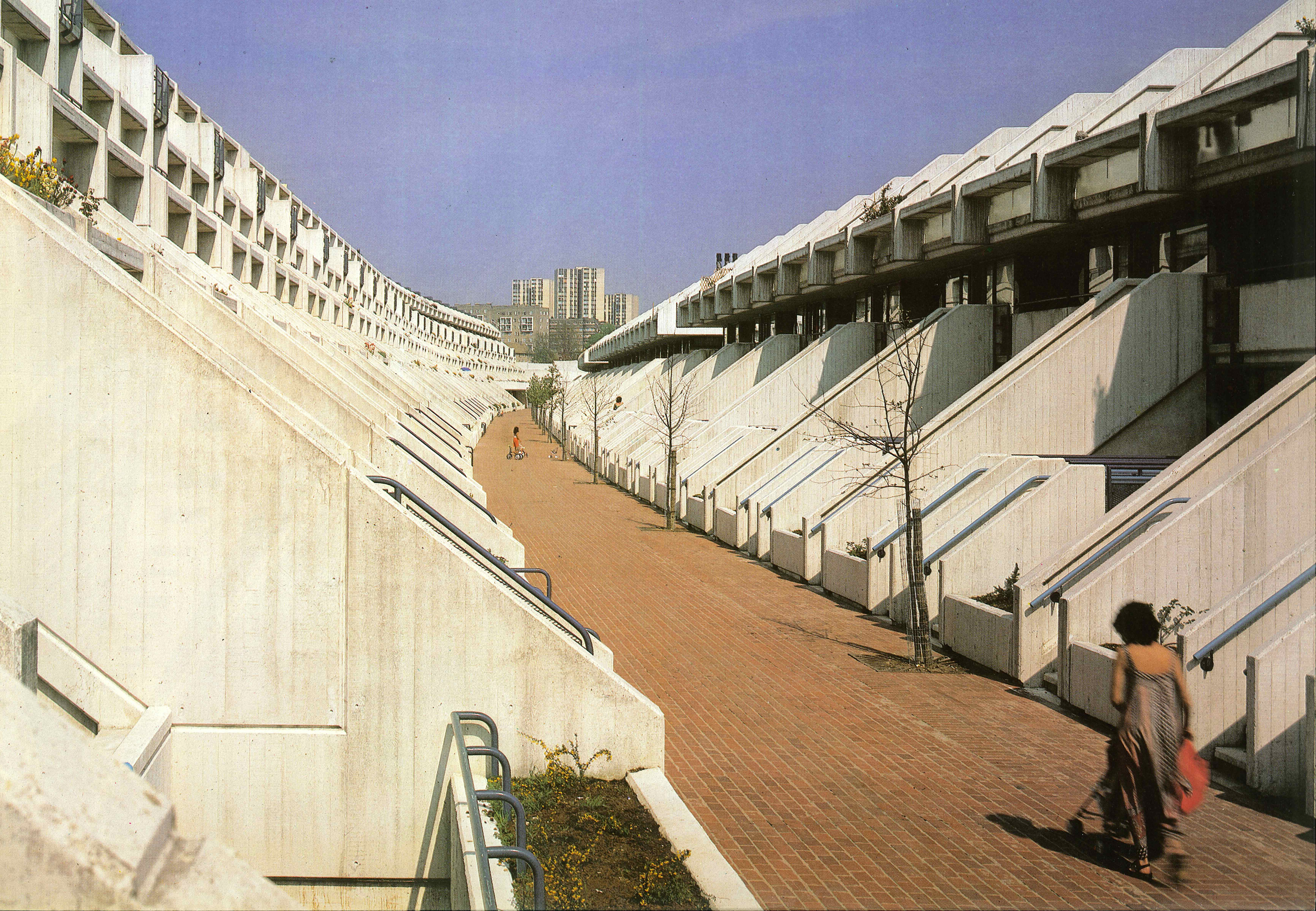 Public housing comprising two parallel pedestrian streets of terraced houses, of four and six storeys, which have a central park between them, a school for 100 mentally handicapped children; community centre, youth club, play centre, and two shops
