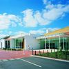 Inside, the 25m six-lane competition pool hall is edged with glazed walls at one end and one side. At the opposite (shallow) end are changing rooms, and along the other side are 200 fixed seats. The pool surrounds are deep to accommodate the large number of students that can be involved in inter-school competitions.