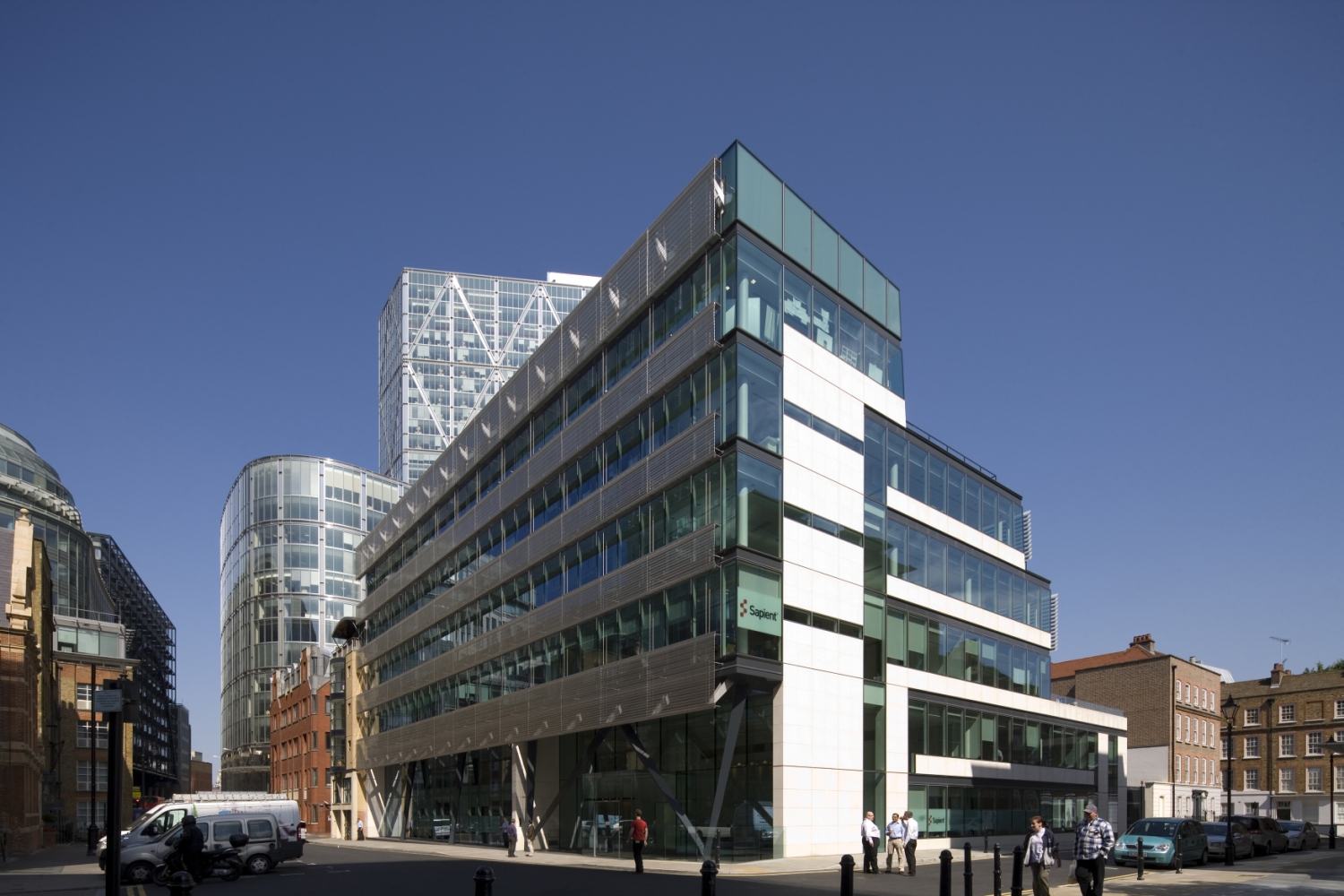 Five-storey office building that forms part of the Spitalfields Market Development Area and completes the regeneration of the Spital Square area