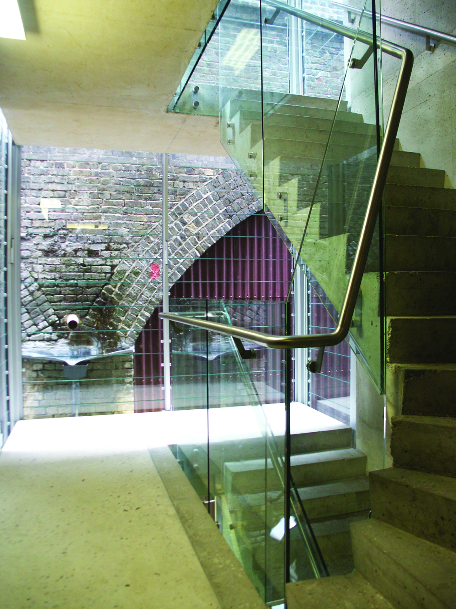 Each apartment is organised as a large, open double-height living space, with adjacent bedrooms and stairs forming a buffer to the railway. The transformation of the traditional apartment plan responds to changing living and working patterns of contemporary urban households.