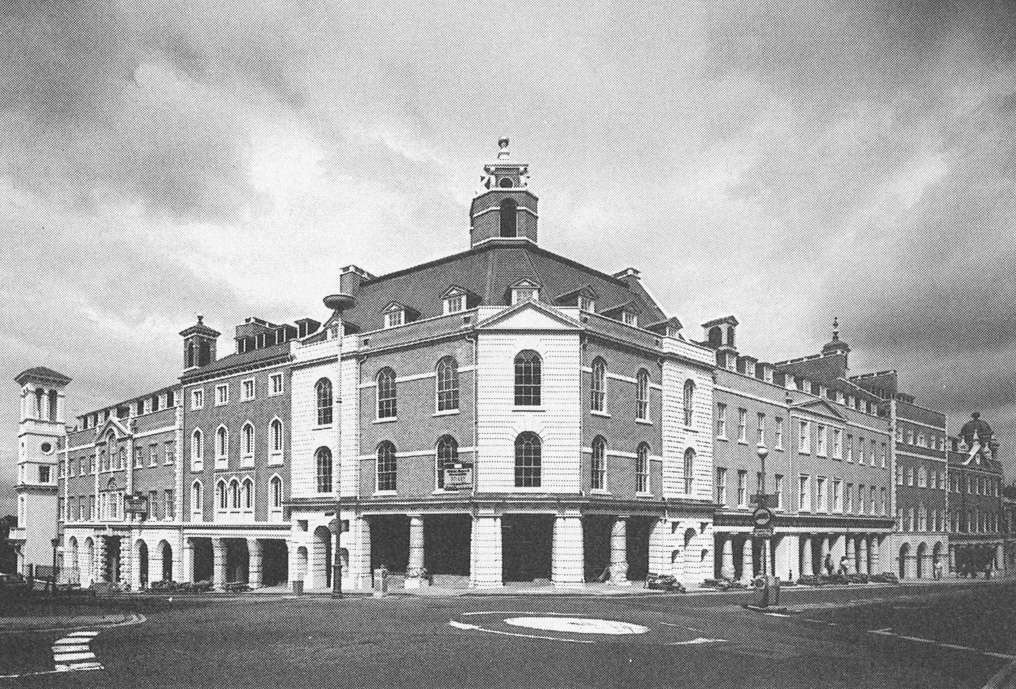 The development exhibits some of the rich variations of English 18th-century architecture, using red and yellow bricks, pantiles, plain tiles, slate and lead, sash and casement windows, and all the five Orders. All the office buildings are designed in accordance with the Georgian requirement of there being 20 feet from the window to the spine wall, so that it can function satisfactorily without air-conditioning or excessive artificial light.