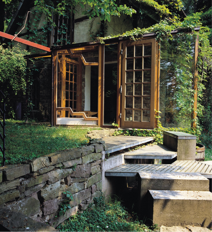 At the heart of the interventions is a wish to connect the buildings more intimately, more directly, with their contrasting landscapes - the meadow and courtyard of the Tecta factory, and the wooded slopes of the Bad Karlshafen house, the Hexenhaus. On both sites, the project includes numerous additions and subtractions to the existing buildings, such as porches, openings in walls, floors and roofs, garden pavilions and bridges.