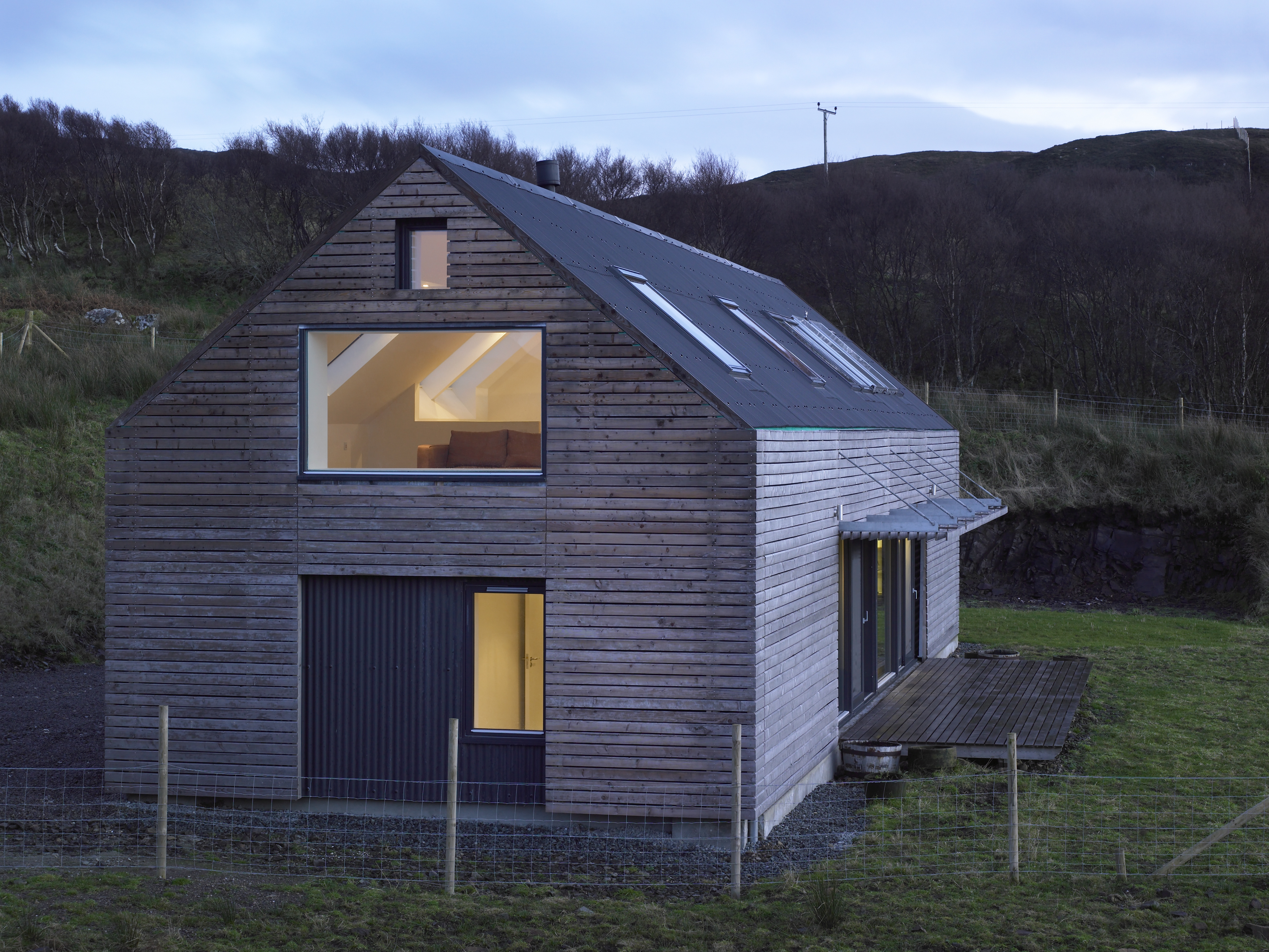 The siting and layout was selected to make the best use of the location. Upstairs a cantilevered picture window gives a view of the Cuillin mountain range while the large area of glazing downstairs faces south-west to the sea loch and across to the islands of Rhum and Canna.