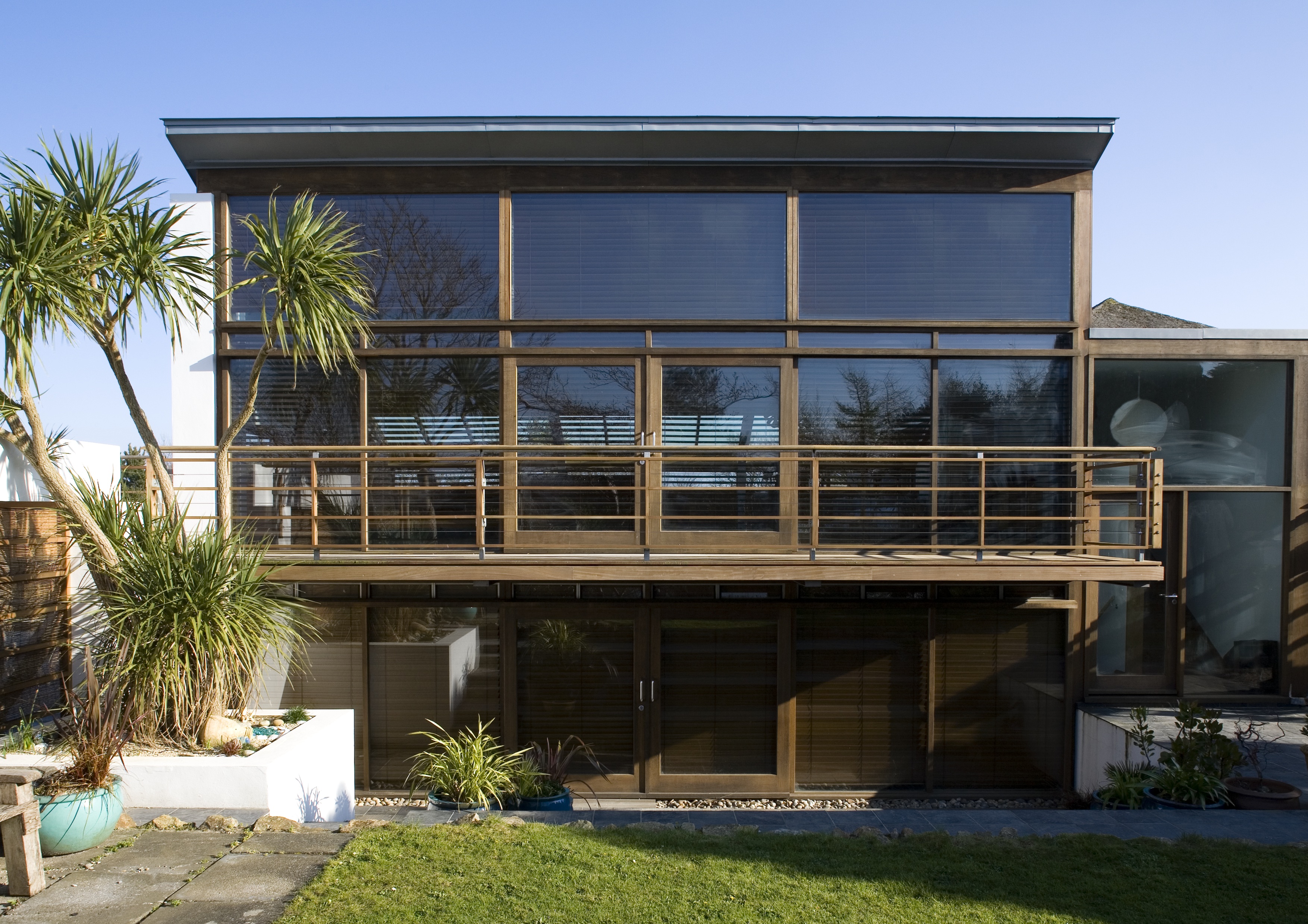 Triple height north facing glazed screen overlooking mature gardens