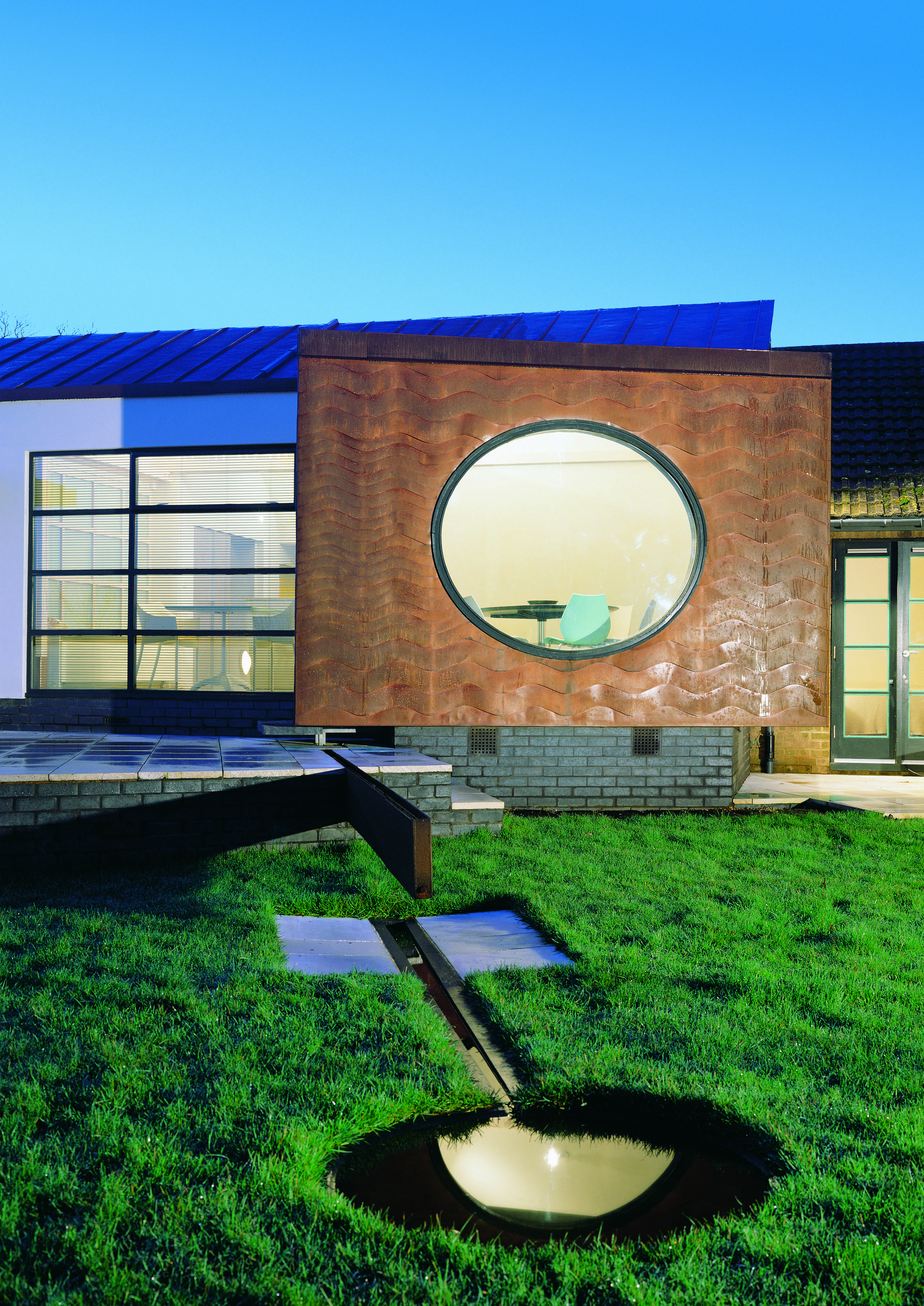 The existing south-orientated cellular plan of the house remains intact. The retained garage and eastern gable to the bungalow now houses the entrance hall, introducing a promenade to the entrance.