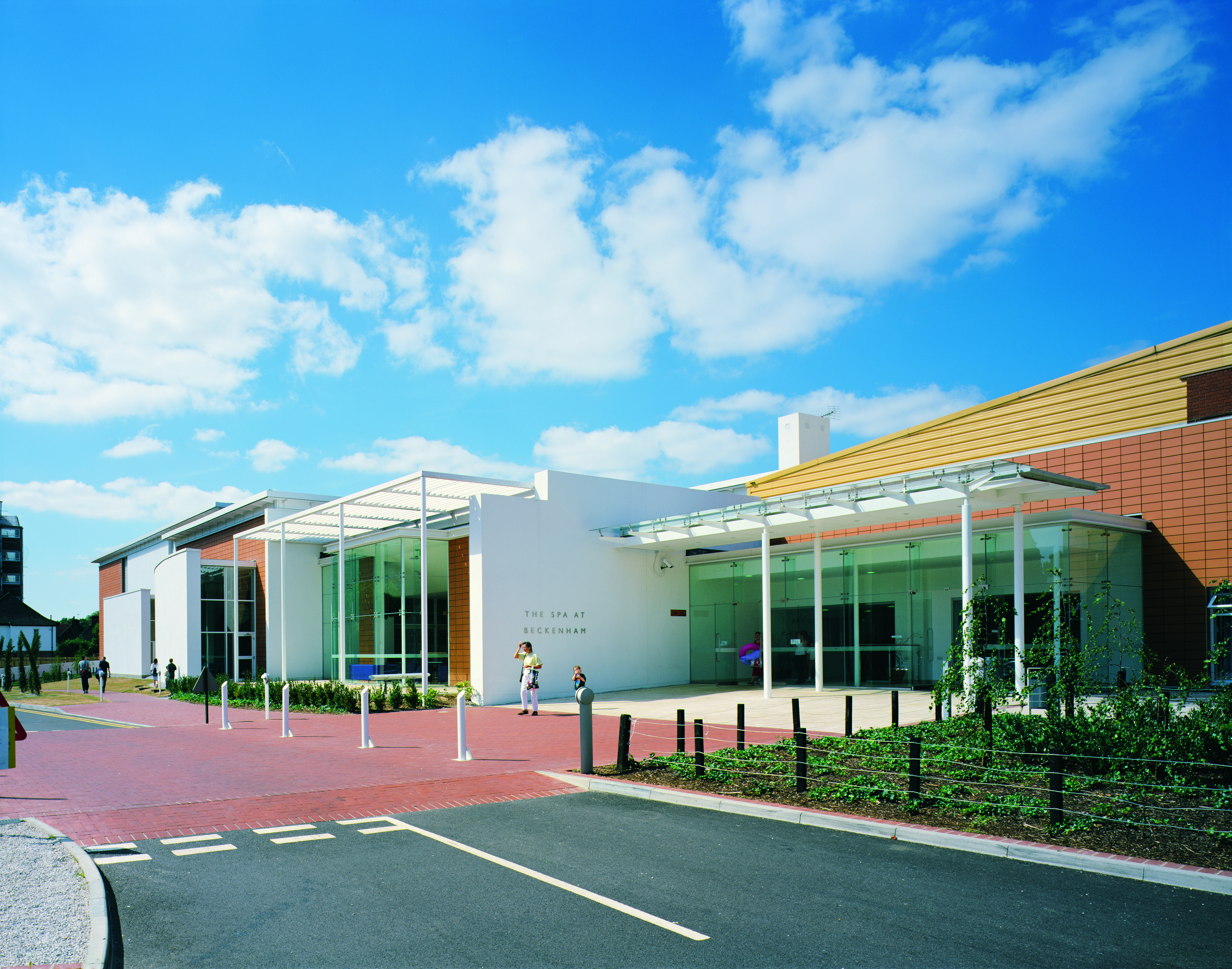 Situated just off Beckenham High Street, the bar and reception areas of this leisure centre form one edge of an urban square whose remaining edges are defined by an arts centre and library.