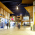 At first floor level of the warmside zone are bars and restaurants overlooking the ski slope beyond the glass, whose walls are covered with giant transfers of Alpine scenery. There are ski lifts on either side of the main slopes, while on the learner slope is an inclined travelator. The warmside zone is reached from the car park and main entrance via a cranked shopping street.