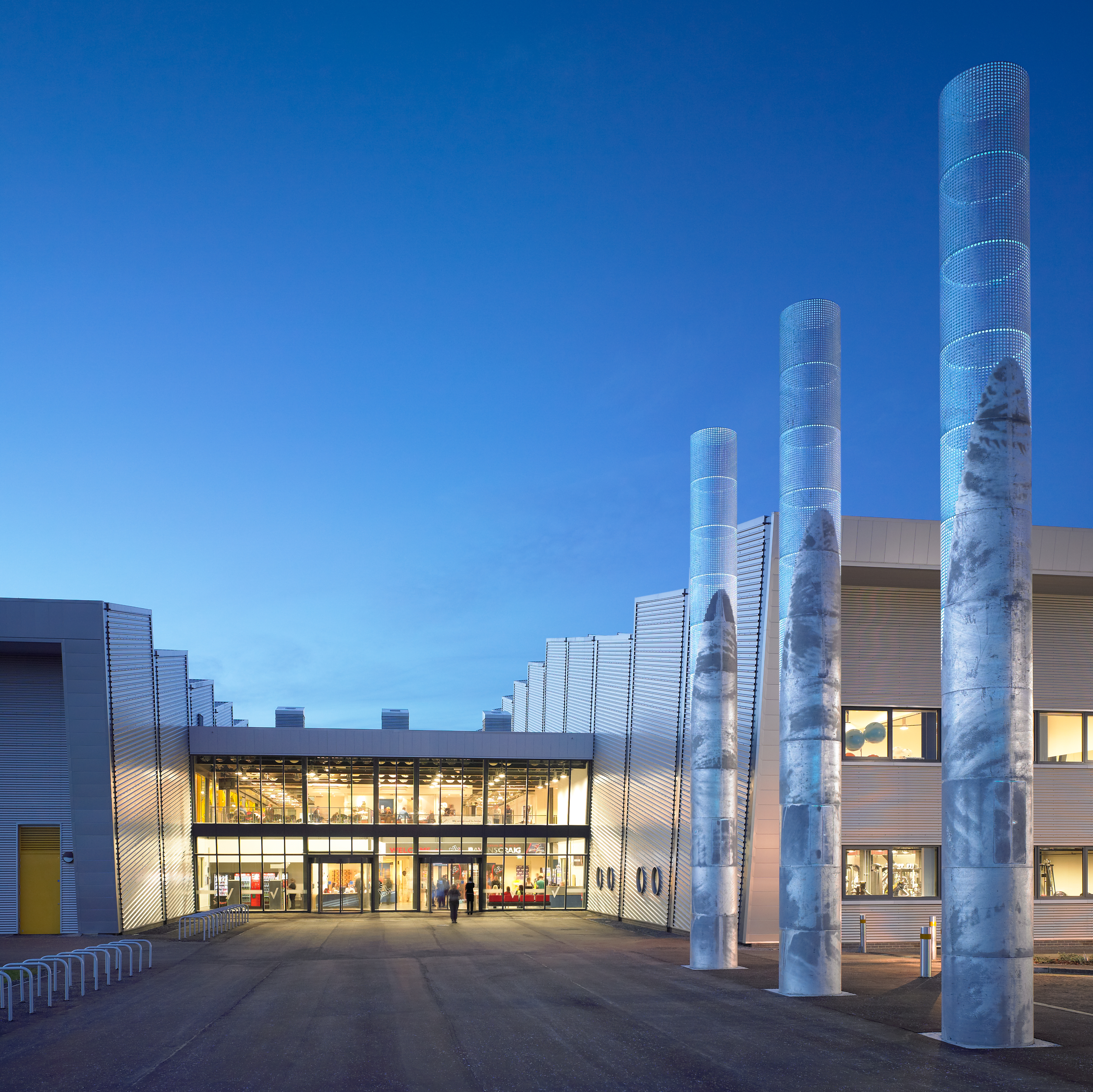 The materials of the design are intended to refer to the industrial history of the area, and the former steelworks factory on which the site is located.