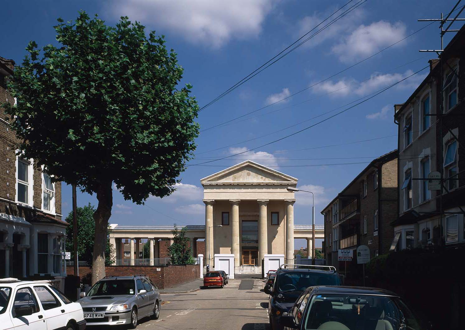 The Portico is all that remains of the London Orphans Asylum built in 1827 which was converted in 1880 into the Salvation Army Congress Hall. The other buildings were demolished in 1976 and the Portico retained as a townscape feature. This had fallen into disrepair and the Grade II listed structure was on the Buildings at Risk register.