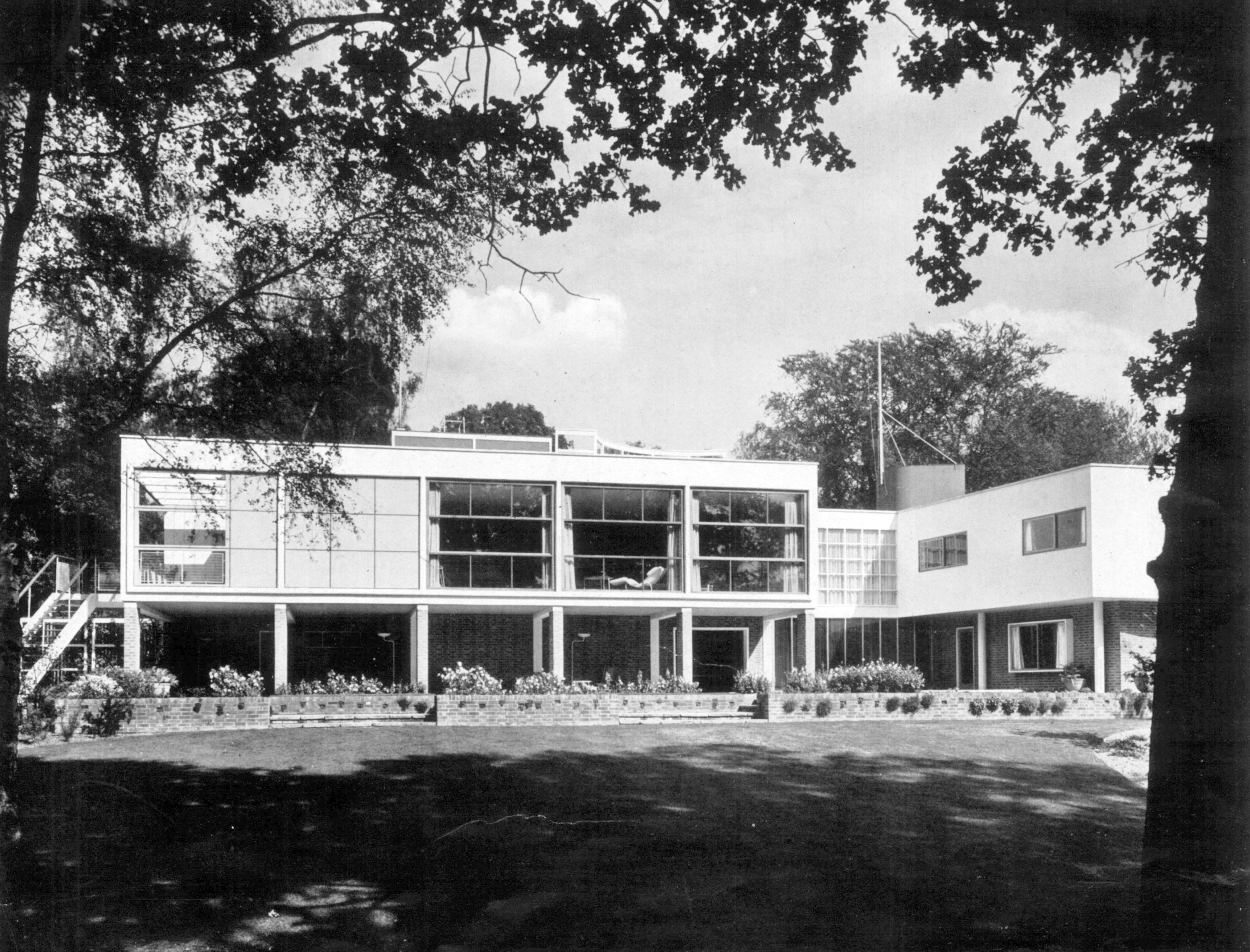 Homewood was built to replace a dated Victorian house on an eight acre estate in Esher, Surrey. Citing Le Corbusier’s Villa Savoye and Ludwig Mies van der Rohe’s Tugendhat House as influences, architect Patrick Gwynne designed within the strict modernist boundaries.