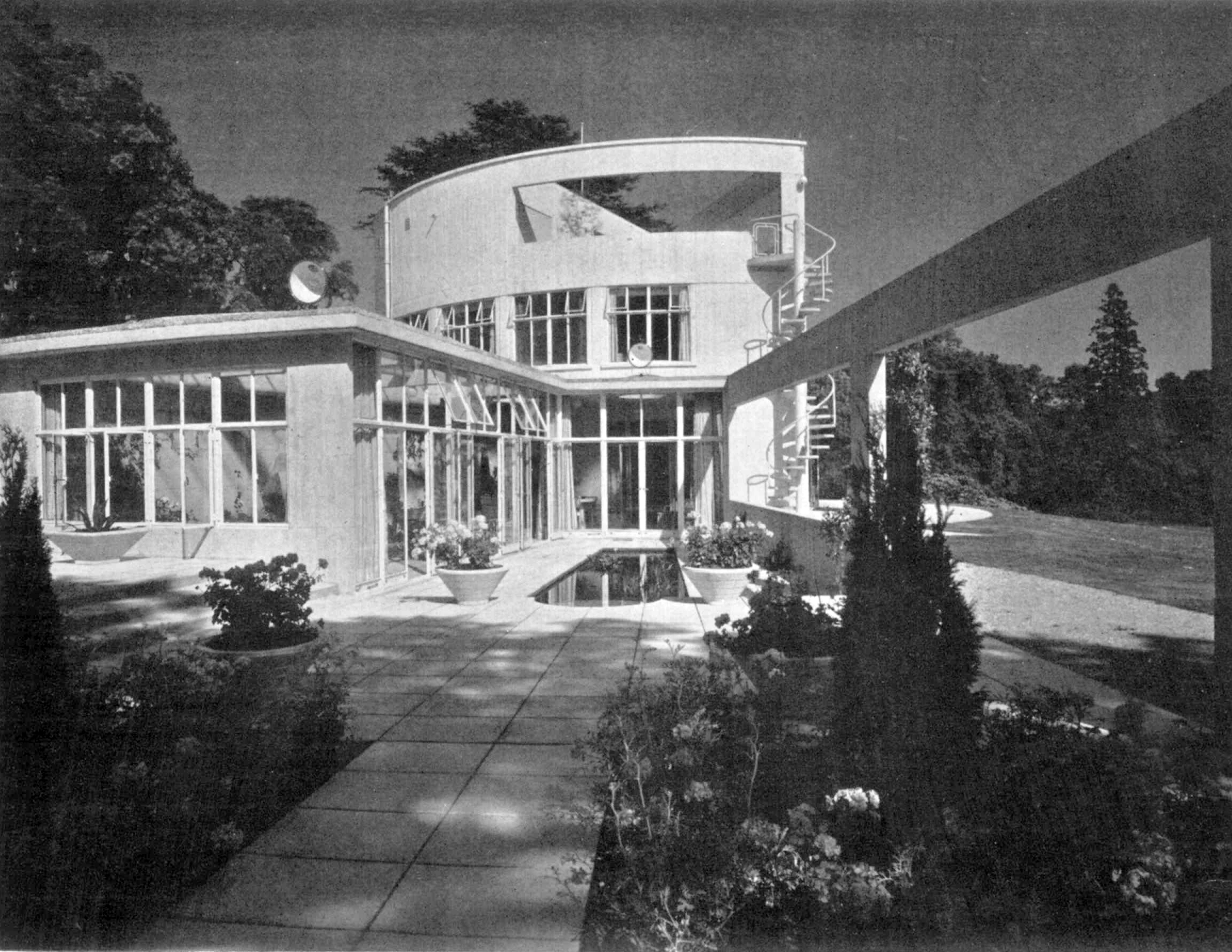 The structure of the house, winter garden and pool is in reinforced concrete. The shell of the house consists of three ring beams at each floor level with ten-inch columns spaced at regular intervals. The floor slabs are continuous. The concrete exterior is painted with silicate paint, whilst the reinforced concrete roofs are insulated with cock and asphalted with a further insulating finish of crushed spar.