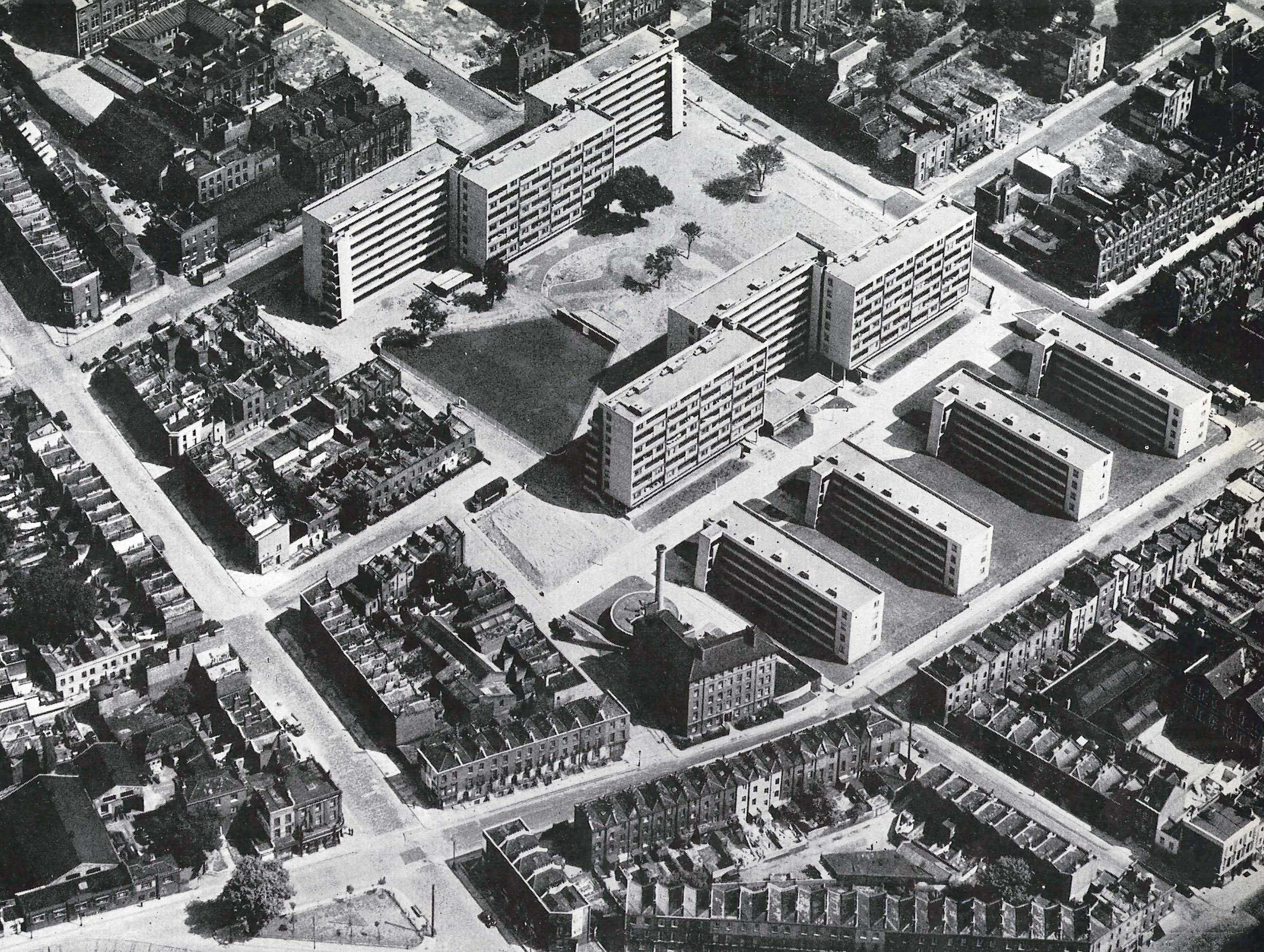 Air view from the north-west The gardes between the blocks are still incomplete at this stage