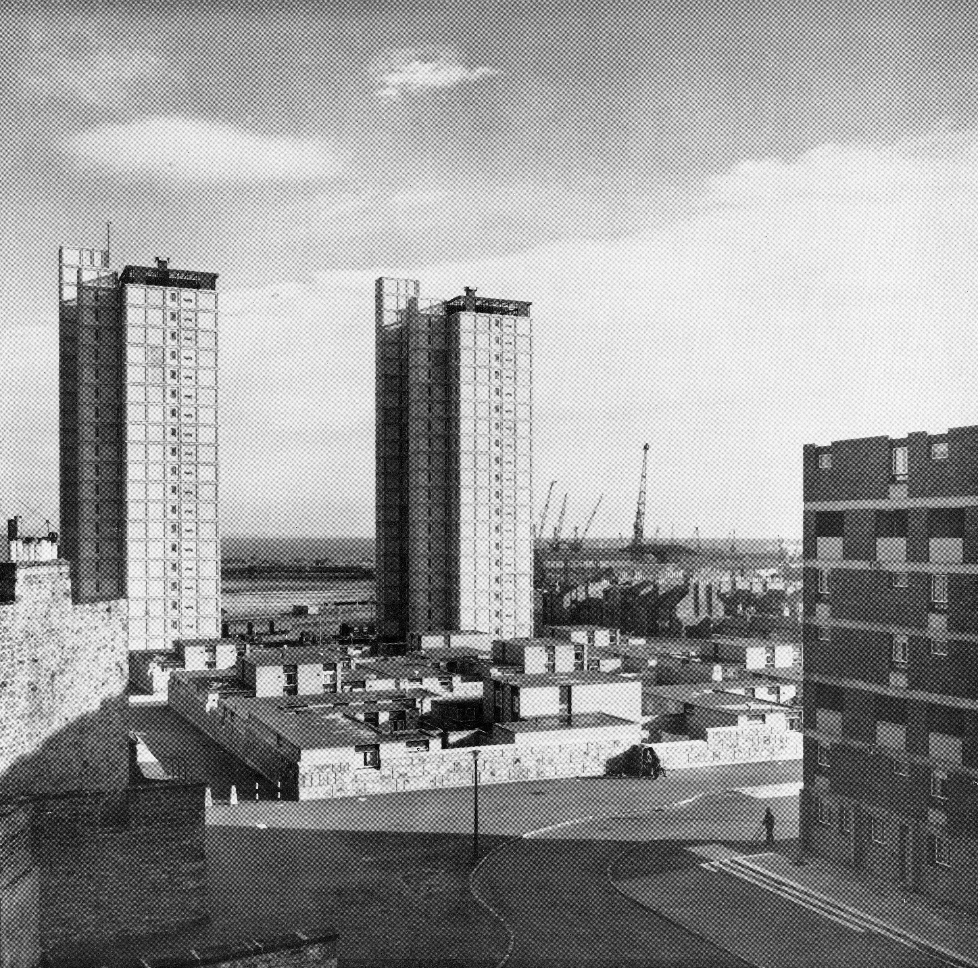 The high-rise buildings were constructed insitu in concrete with precast concrete cladding applied without the use of scaffolding.
