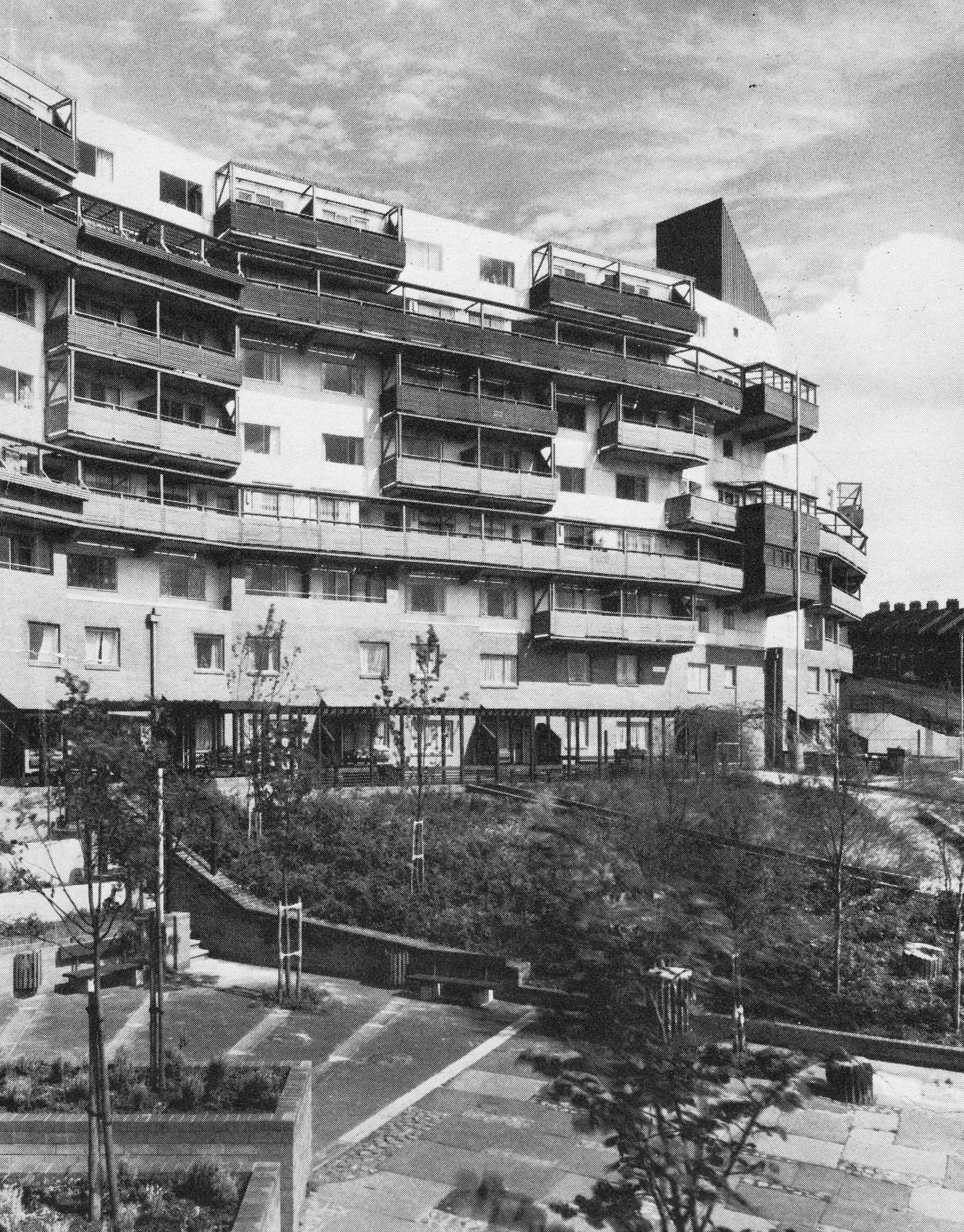 The Byker ‘wall’ is the redevelopment’s best known feature, a string of undulating blocks ranging from three to twelve storeys in height, intended to protect the northern edge of the development from the noise of a proposed motorway.