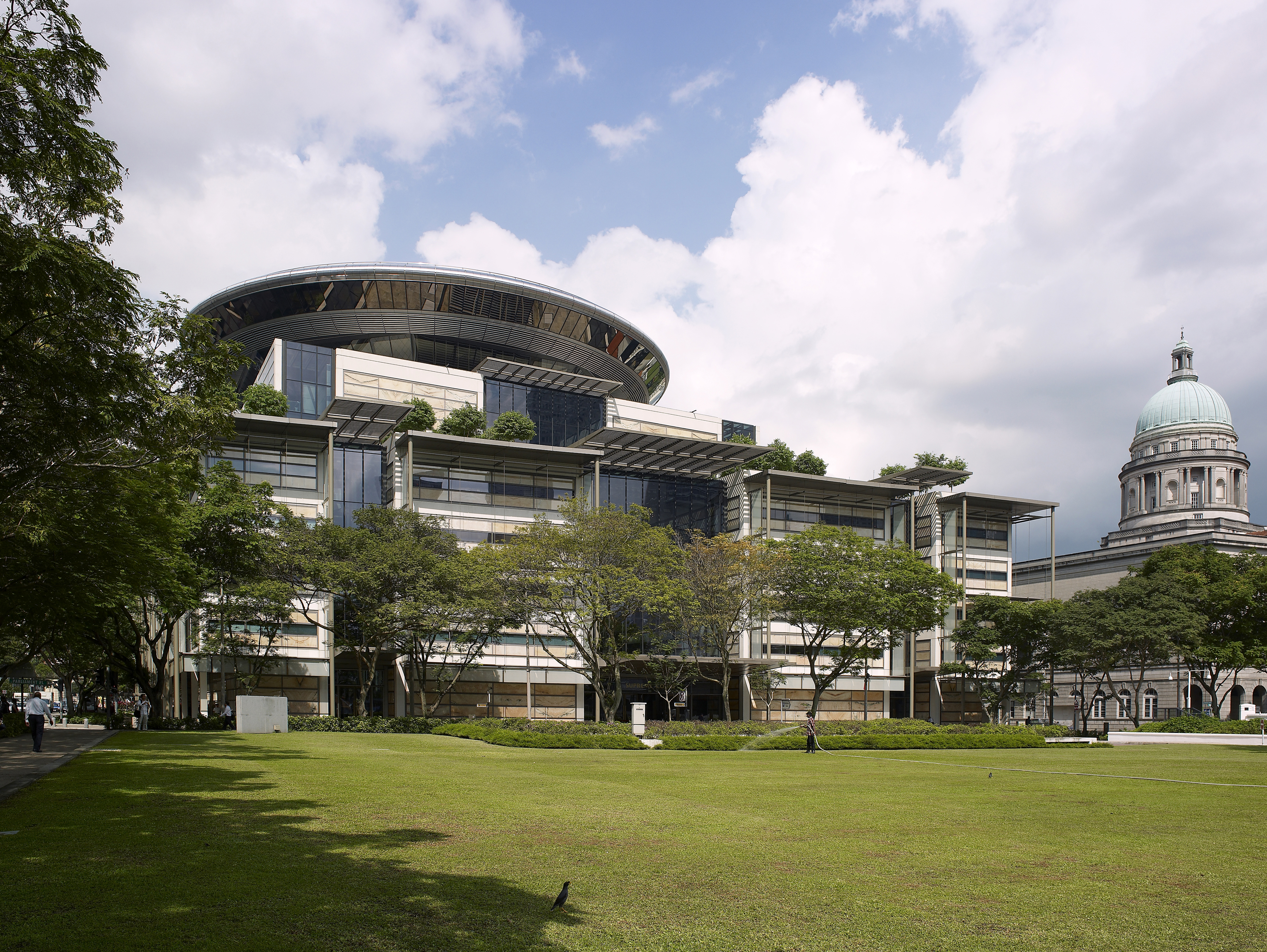 Re-interpretation of the colonial vernacular housing civil, criminal and appeal courts alongside the Singapore Academy of Law with an image of dignity, transparency and openness