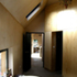 The majority of the finishes are self finished: larch with no capping, reused clay tiles from existing buildings on the site, exposed concrete, shuttering ply joinery, and bare plaster.