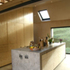 Sliding glass screens that disappear into the walls of the kitchen allow a sense of the valley side to run through the site. The profile of the new extension was designed to allow maximum light to penetrate into the building.