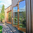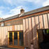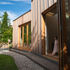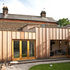 The new elements are framed in oak and clad in Siberian Larch, the differentiation of materials allows it to be read as a separate volume rather than mimic the brick character of the existing building.