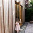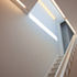 The cranked geometry allows for maximum sun penetration and the shapes the garden space. The vertical fins are contrasted by a linear walkway serving as a bench connecting the house to the garden.