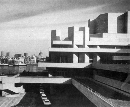 The building is predominately concrete, containing three theatres with a total of 2,400 seats, two restaurants, eight bars, 49 air-conditioned dressing rooms, scenery and wardrobe stores, offices, workshops and parking for 400 cars, together with foyers, galleries and riverside terraces.