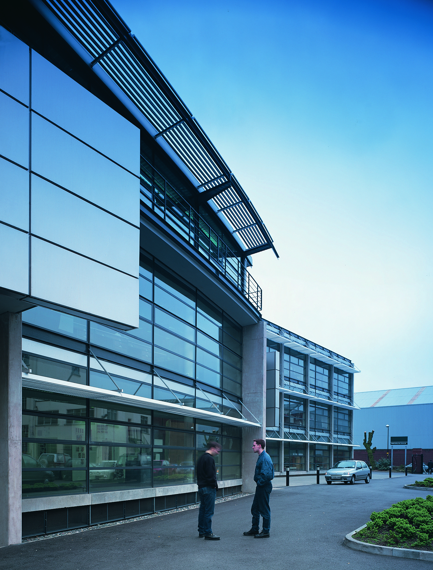 The heavily glazed and highly expressive entrance facade helps make a strong external impact