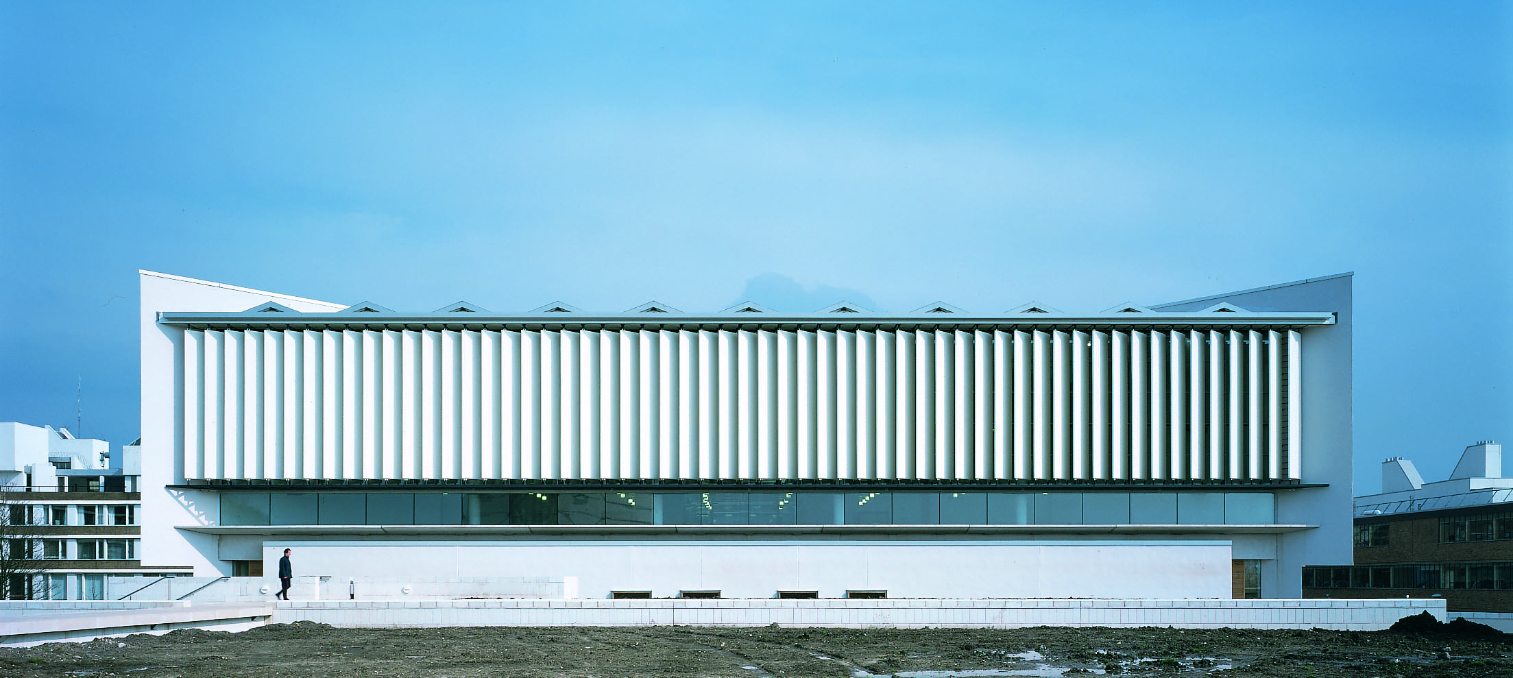 An atrium, which forms an internal street extending from the existing library, accommodates seminar/lecture rooms, offices, book storage and IT areas. The internal street is the core of both the existing and new buildings, making their relationship easily understandable. A reading room is situated on the first floor with double-height space allowing for natural daylight and a high quality of reading light.
