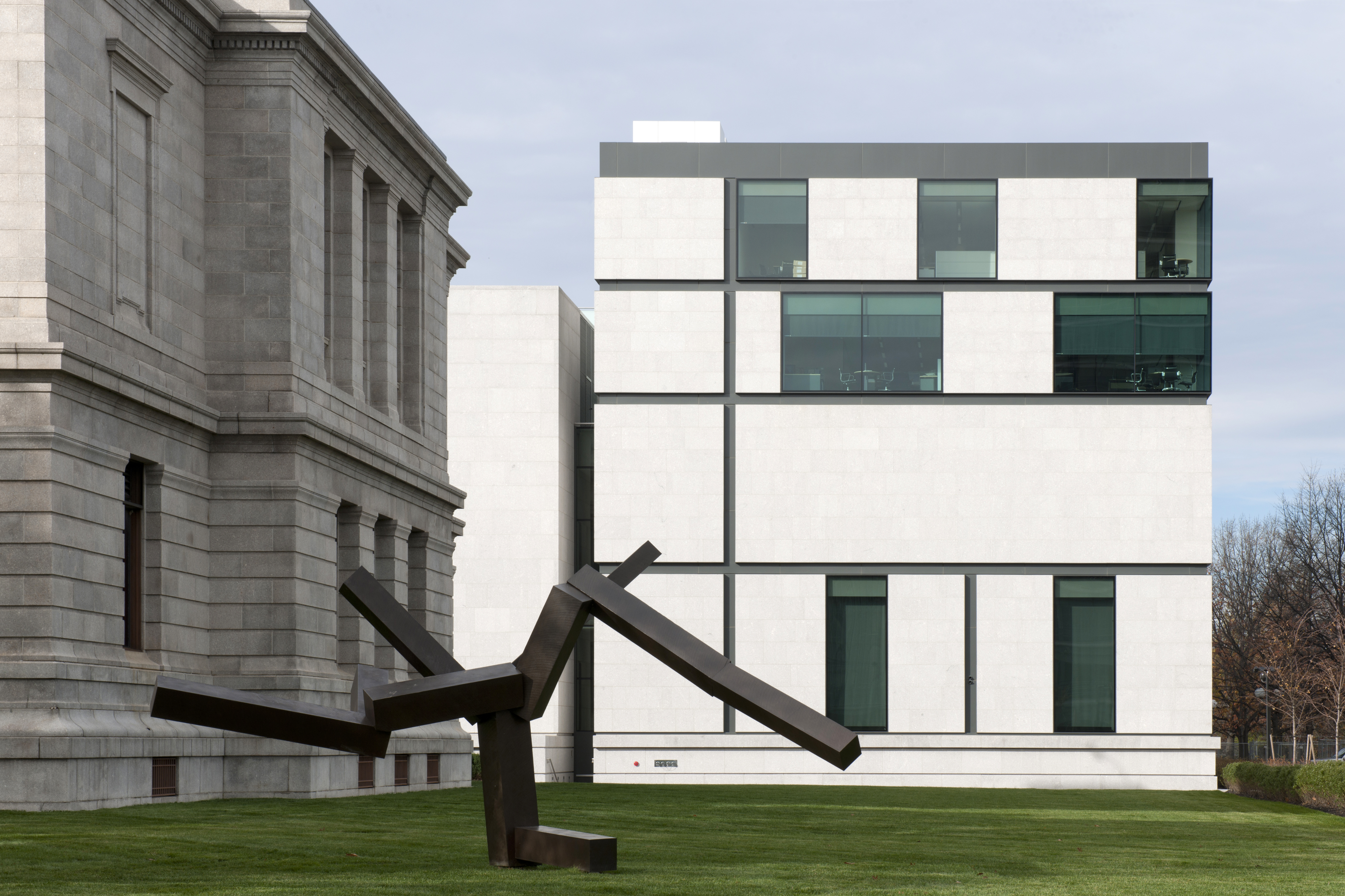 Propotions of the new west wing draw upon those of Guy Lowell's original museum building