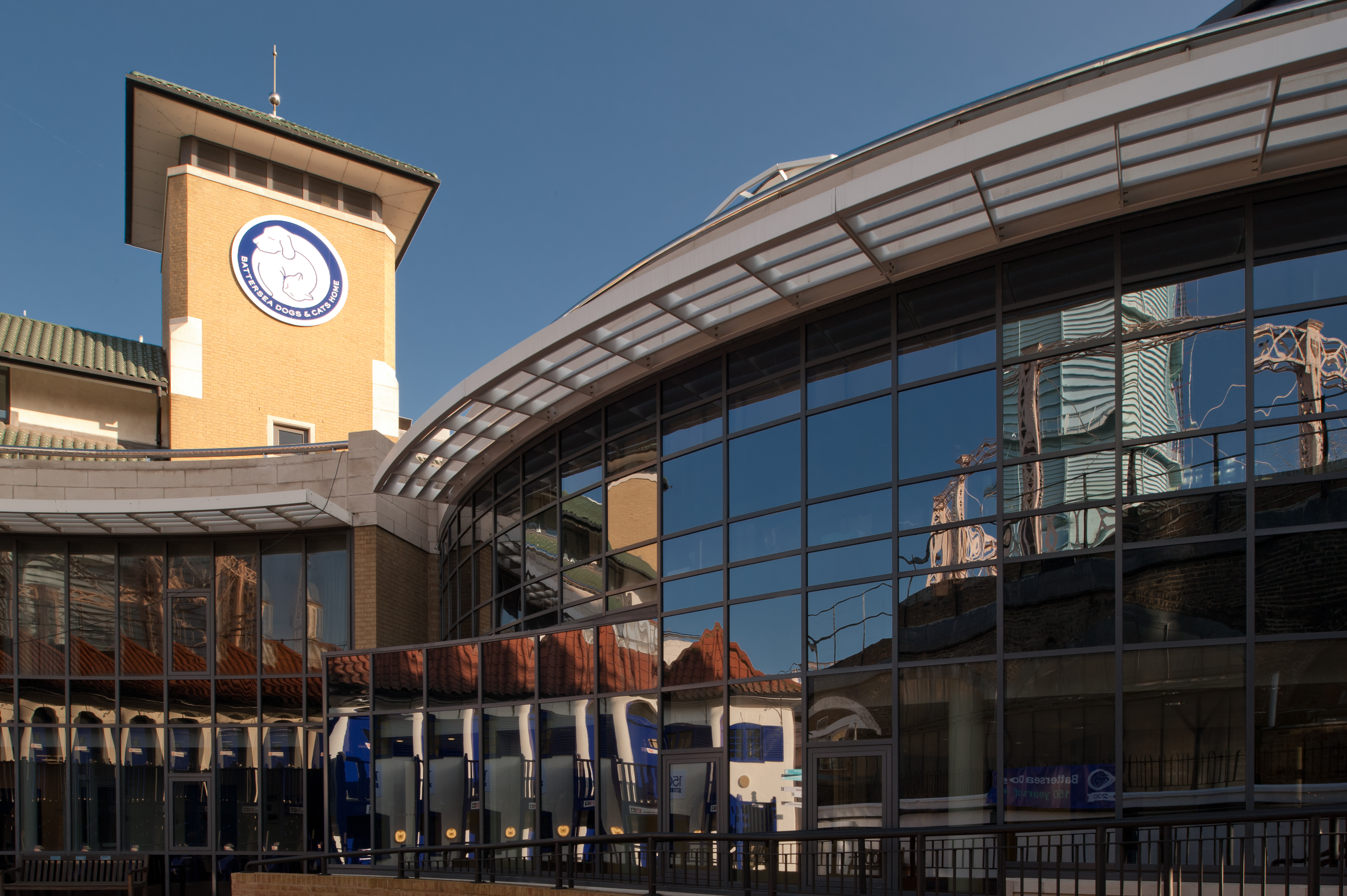 The structure aims to provide a pleasant environment for its feline residents as they await new owners, with highly insulated curtain-walling and self cleaning windows specifically sized and located to make the most of natural light.