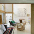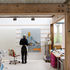 The accommodation is divided between two wings: a wide one to the north for the double-height gallery and living space with adjacent studio and bedroom above; and a narrower one to the east with studio downstairs and kitchen and living rooms above, enjoying the park view.
