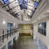 The renovation has maintained elements of the original plan, such as the central light well and ramps. Recessed brick bays in the front elevation have been replaced by three-storey glazing, with the addition of roof lights, allowing views deep into the building while some brick bays have been restored.