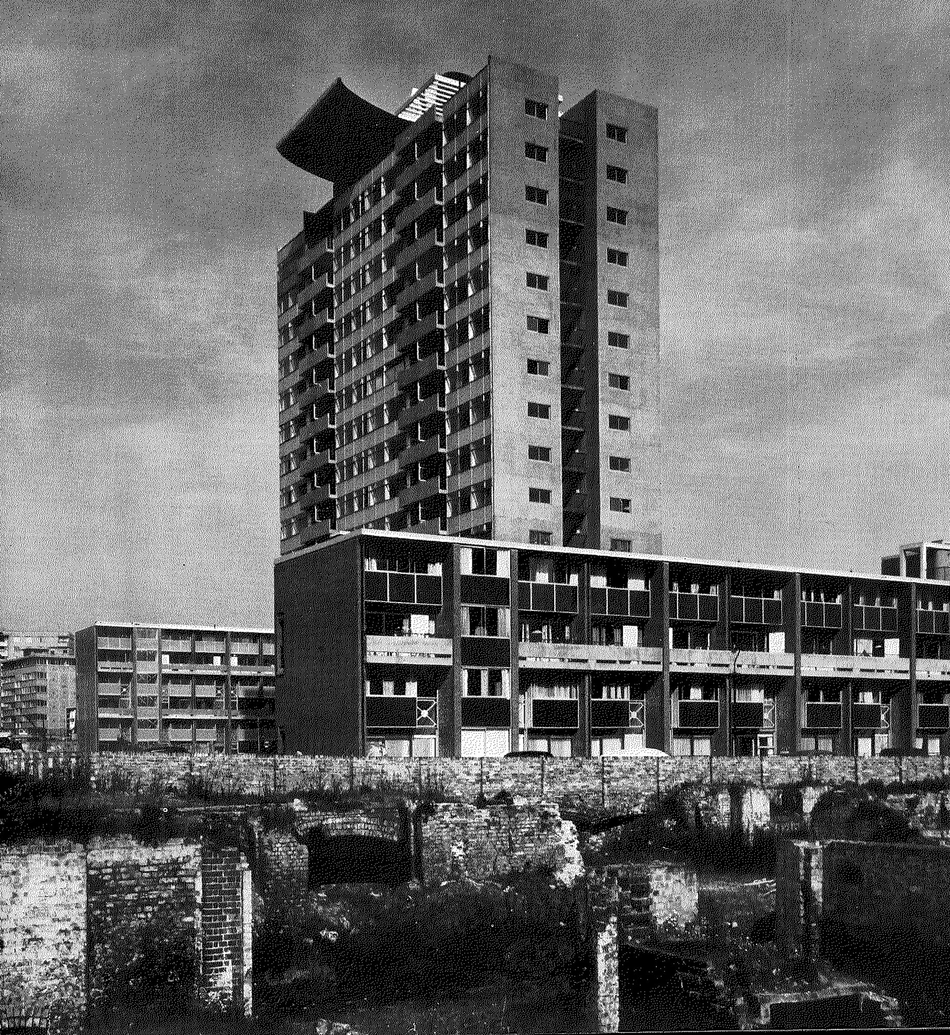 Great Arthur House, the 16 storey block provides vertical emphasis at the centre of the development and contains 120 flats on 15 floors with estate offices, hobby rooms and laundry rooms placed on the ground floor.