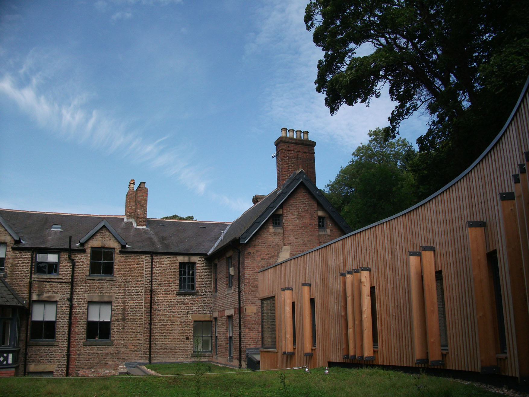 The centre has been built within the existing boundary wall of Millfield House, in the parkland of Jesmond Dene, and provides exhibition, cafe and education facilities.