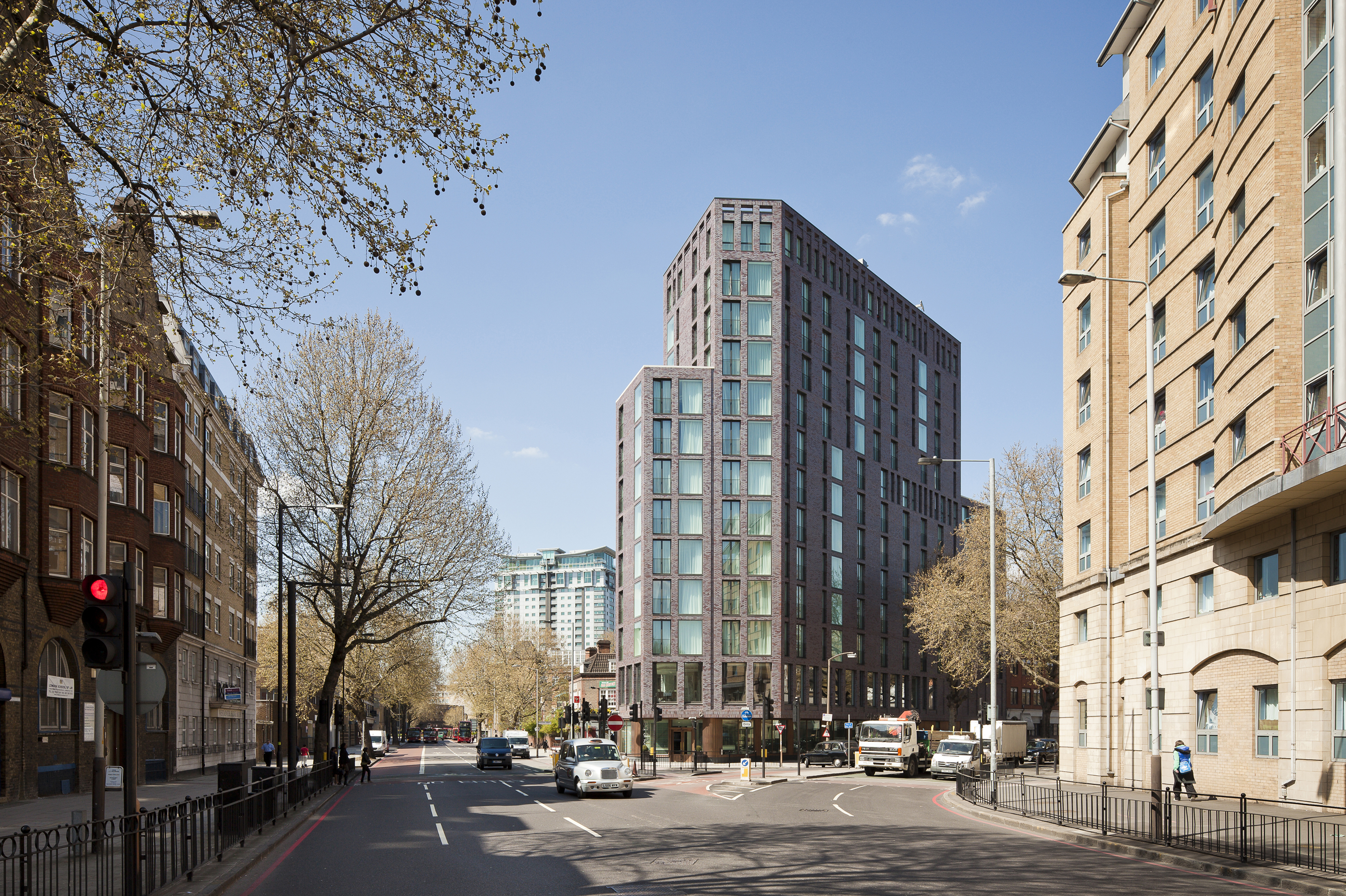 The 177 room hotel sits between the southern end of Waterloo Road and St. Georges Circus. It is composed of three parts - base, middle and crown - with varying levels and heights.
