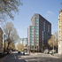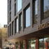 The building is cut back at ground level to create a path for pedestrians, the resulting overhang forms an entrance into the glazed foyer. There is a ground level bar that can be accessed from the street.