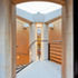 The student rooms are divided by a series of parallel concrete fin walls, which are expressed by wooden boxes arranged around the central courtyard. A café is at the heart of the scheme within a double height glass box.