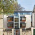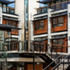 The four storey building forms a south facing courtyard around a historic beech tree.