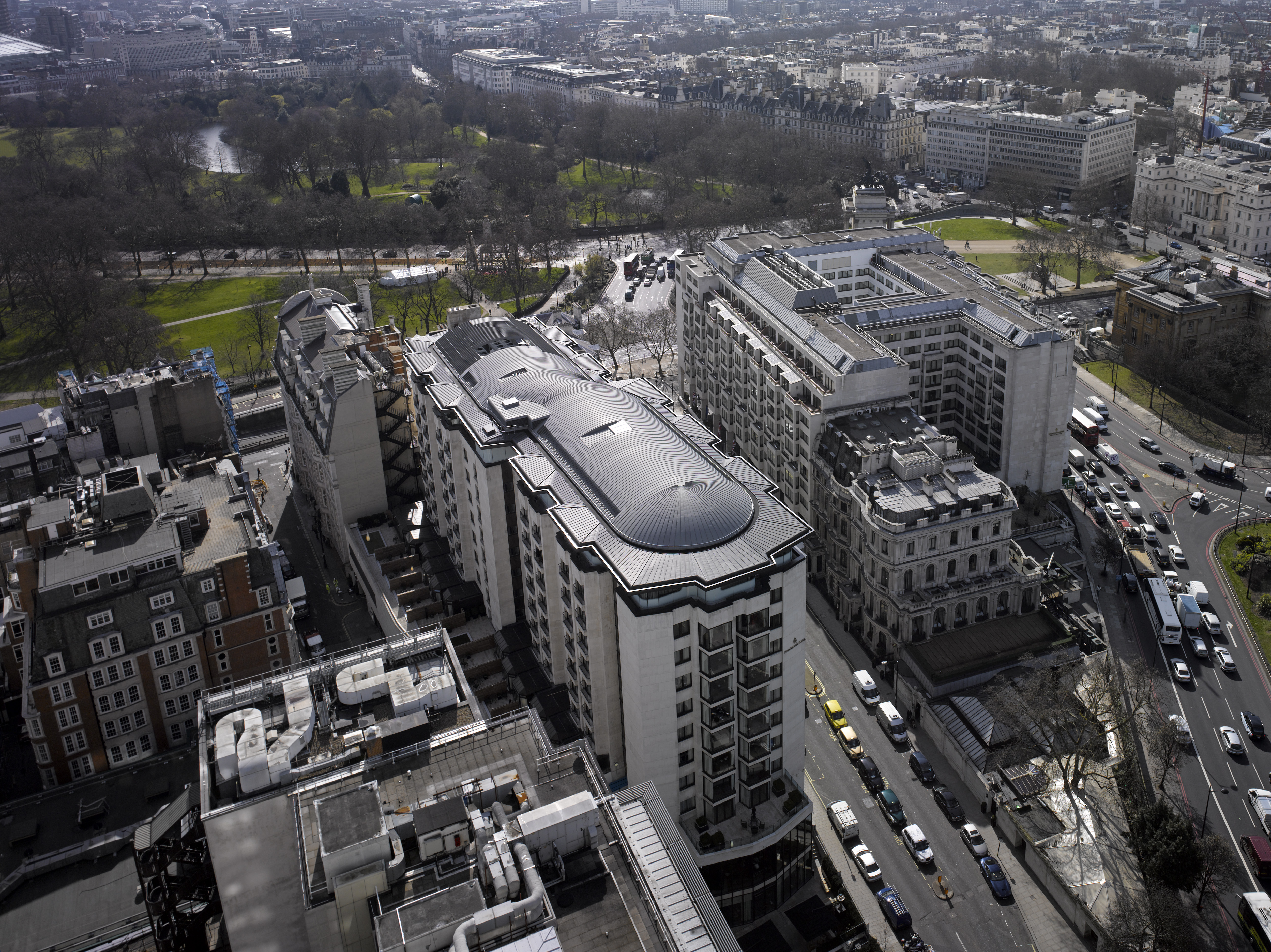 A dialogue with the outside world was established through a graded sequence of increasingly cocooned spaces and a return sequence with a progressively transparent external envelope and panoramic views across Hyde Park, Green Park, Knightsbridge, Mayfair and Buckingham Palace