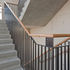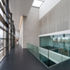 A web of corridors, light wells and glimpsed views dissolve gradually as one ascends through the building. The building uses a limited palette of enduring materials: oak, brick, stone, glass, concrete. Rough brick of the retained building dominates the interior spaces.