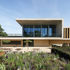 There is little incident on the north and east facades to relieve the regiment of stone piers. To the south, the first-floor accommodation juts out into the gardens.