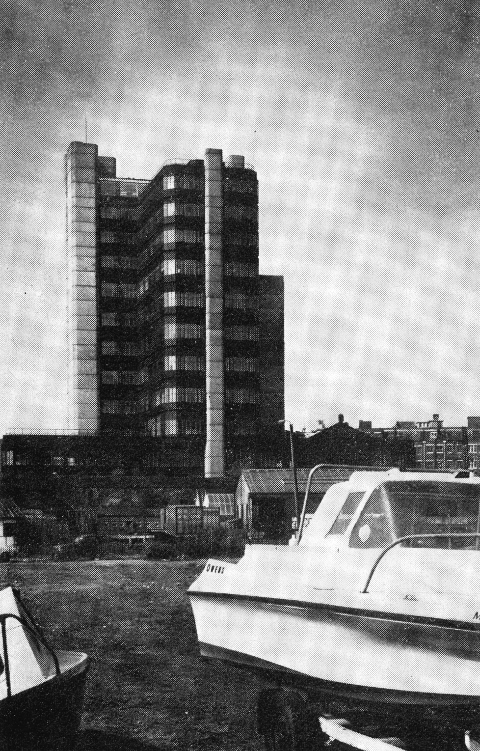 Additional building to the original post-war exchange comprises a three-storey block and a twelve-storey tower following a T-shaped plan