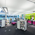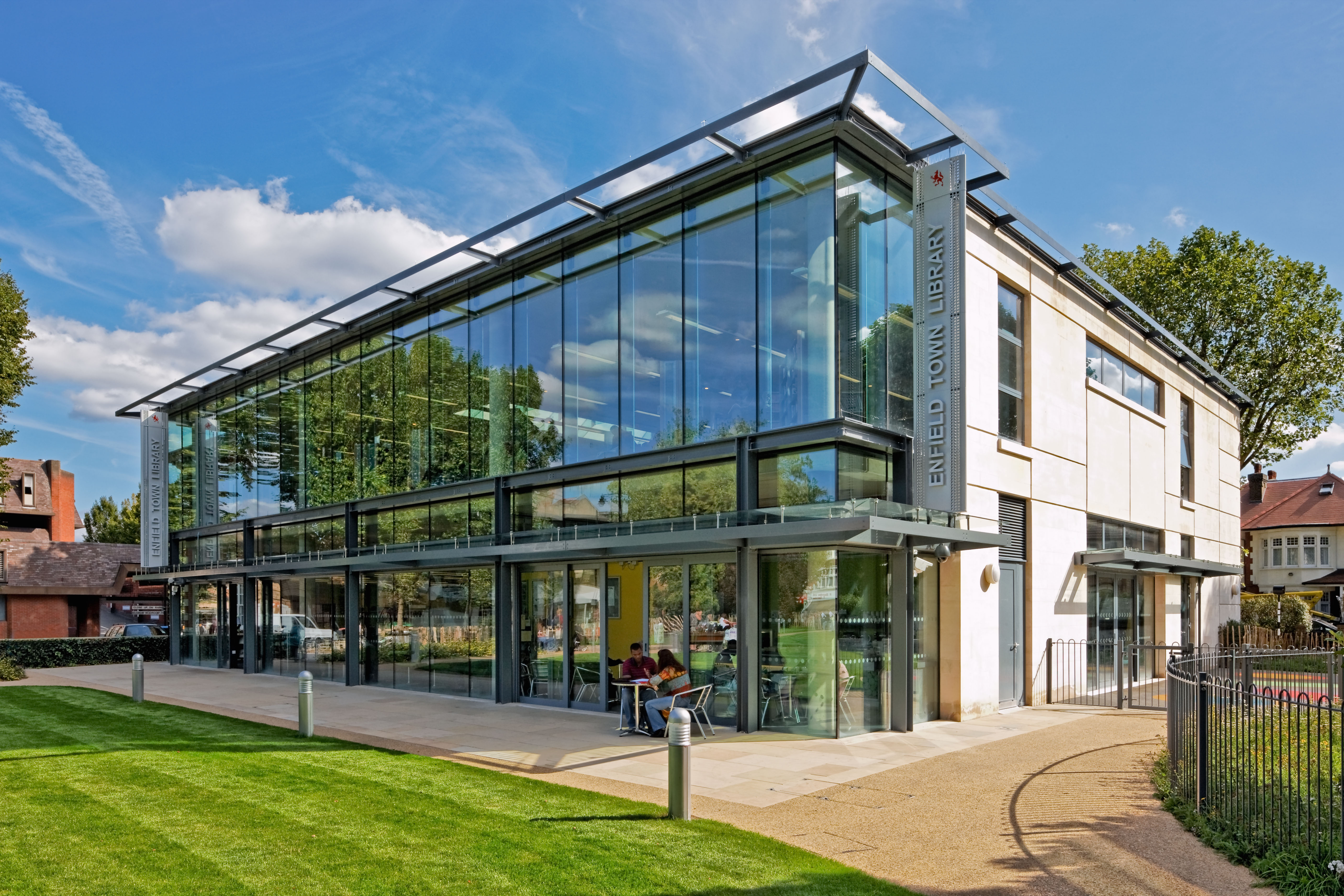 The original building and extension are linked by a two storey top-lit atrium that provides natural light into the centre of the building. Internally the library has both traditional bookstacks and state of the art facilities and includes a cafe and a children's library.